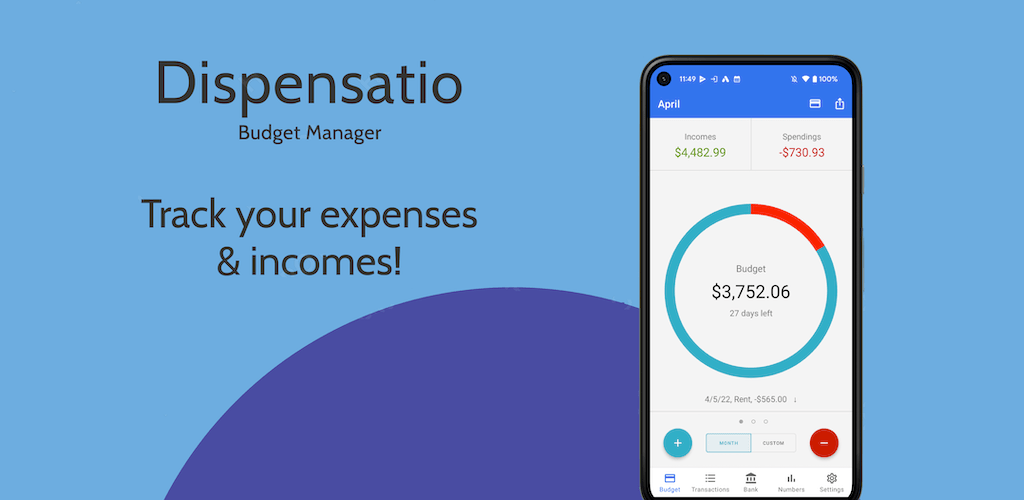With Dispensatio you keep the overview. Enter your income and spendings quickly and easily and view your account balance at any time. Dispensatio impresses with its simplicity and gives you a great overview!