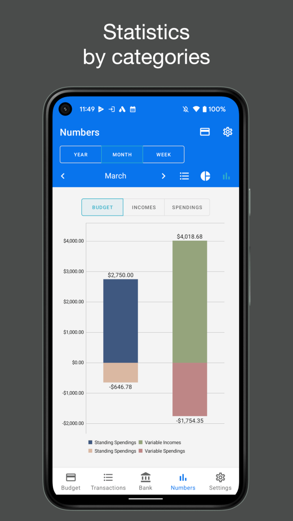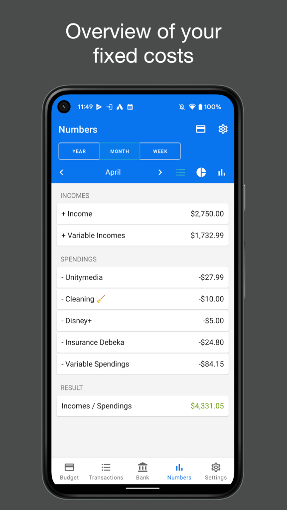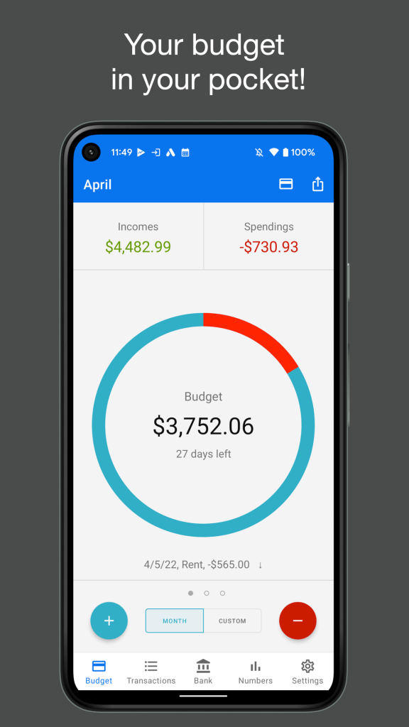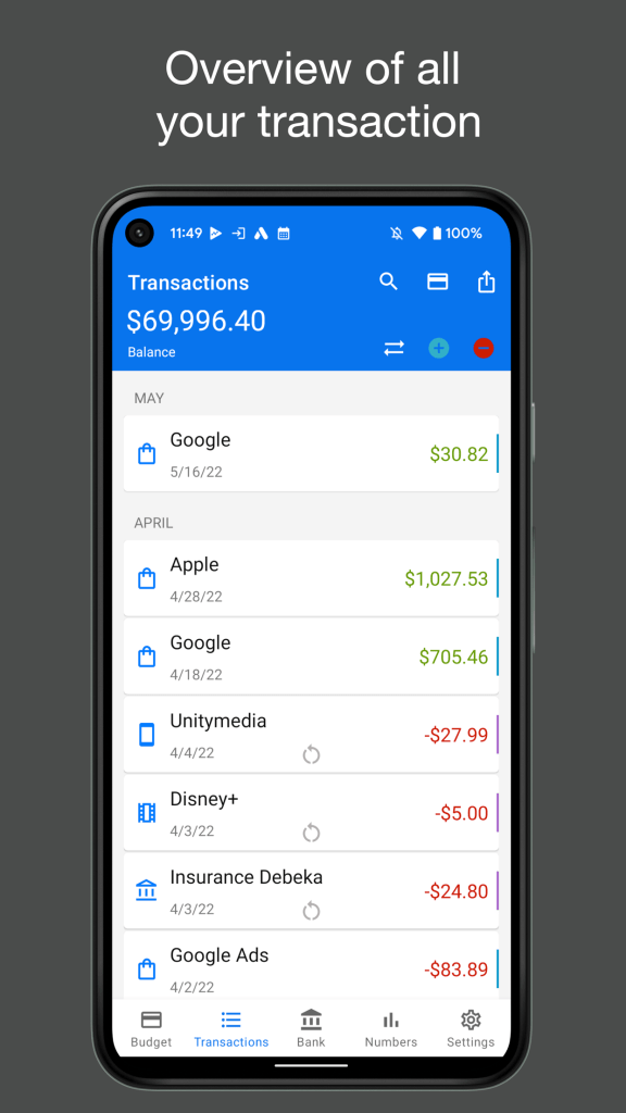 Your budget in your pocket! Keep an overview of your finances and control your income & spendings at a glance!